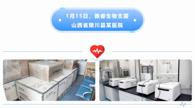 雅睿生物人不遑多讓,積極響應、聞令而動、忘我投入,攜帶儀器迅速奔赴山西省。于3月3日,加班加點完成了山西省運城市聞喜縣某醫院設備的安裝、校準、調試、使用培訓、維護等一系列任務。
