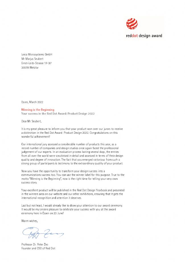 徠卡繼DVM6數碼顯微鏡之后,再一次,不負所望,全新推出的Emspira 3榮獲2022年紅點產品設計大獎
