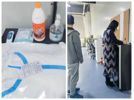后勤部給大家采購了加班物資和防疫物資,并進行每日消毒、測溫、登記。