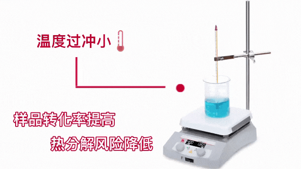無須為過溫控制困擾,GuardianTM 3000 加熱磁力攪拌器控制溫度過沖能力強(qiáng),避免對(duì)熱分解或熱敏性樣品造成嚴(yán)重?fù)p失,以及特定溫度要求的催化劑失去功效,以此可以提高樣品轉(zhuǎn)化率。