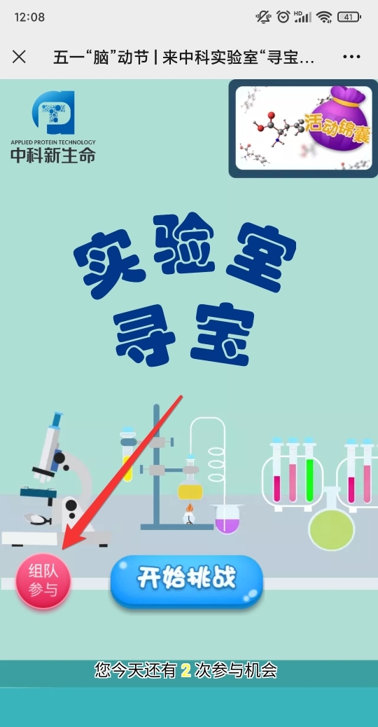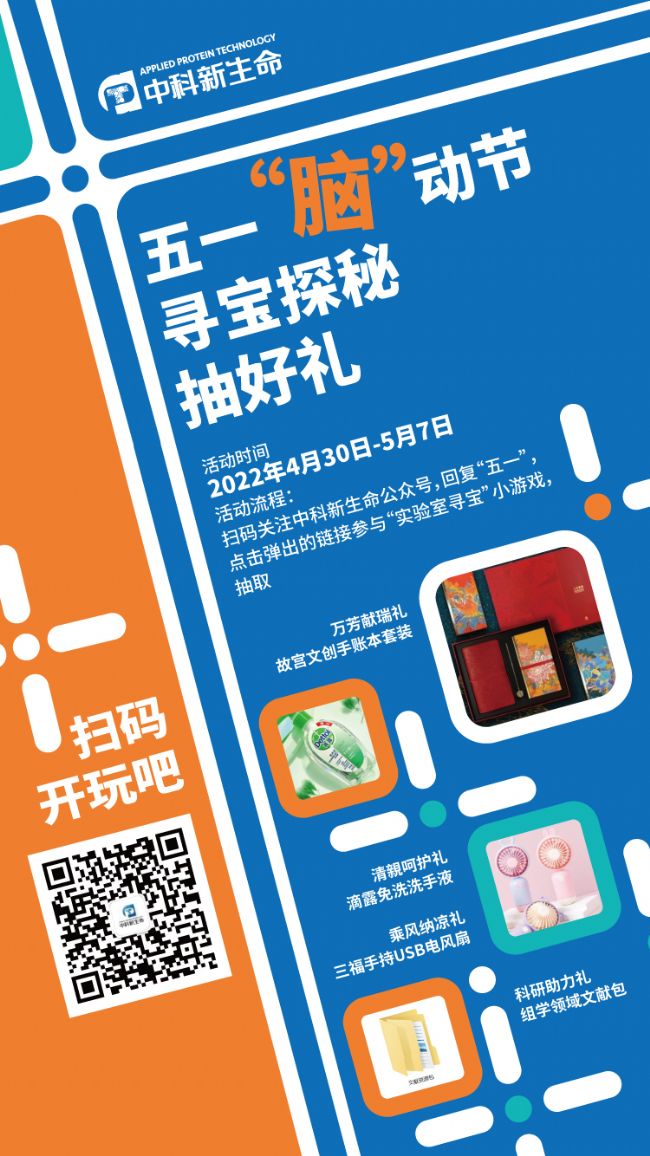 1. 掃碼關(guān)注“中科新生命蛋白代謝多組學(xué)”公眾號(hào),回復(fù)“五一”,點(diǎn)擊彈出的鏈接即可參與“實(shí)驗(yàn)室尋寶”小游戲;