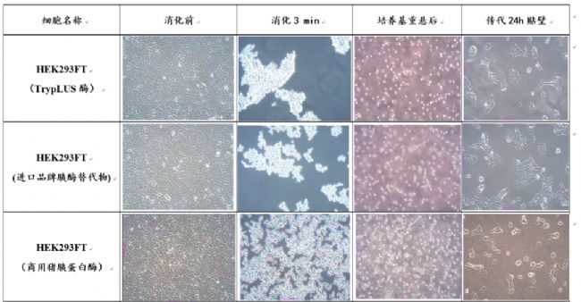 簡化TrypLUS酶細胞消化流程(HEK293FT例)及與同類用途產品消化效果對比: