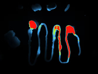 熒光成像的標(biāo)記對象較為廣泛,可以是動物、細(xì)胞、微生物、基因,也可以是抗體、藥物、納米材料等。常用的有綠色熒光蛋白( GFP)、紅色熒光蛋白( DsRed)及其它熒光報告基團(tuán),標(biāo)記方法與體外熒光成像相似,熒光成像具有費用低廉和操作簡單等優(yōu)點。同生物發(fā)光在動物體內(nèi)的穿透性相似,紅光的穿透性在體內(nèi)比藍(lán)綠光的穿透性效率高,近紅外熒光為成像觀察的最佳選擇。