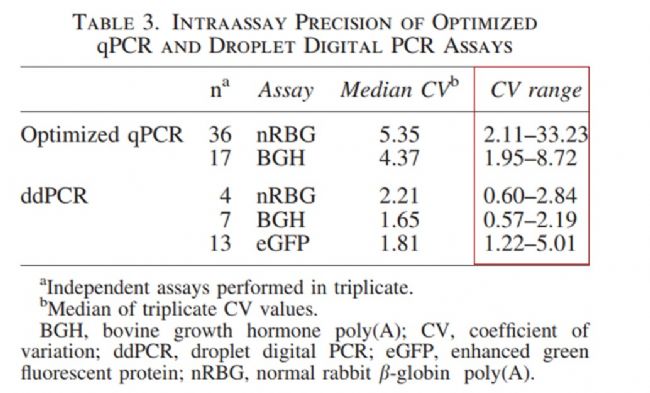 - ddPCR有更高的準確度,定量CV值通常小于10%;