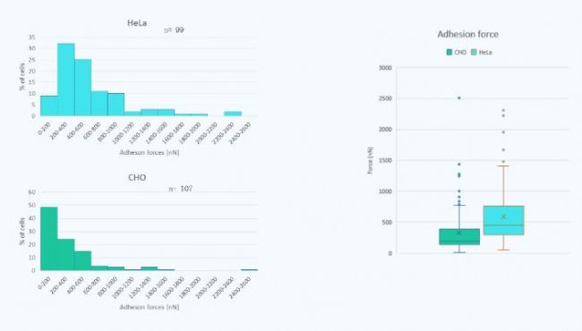 FluidFM技術測量HeLa細胞核CHO細胞的粘附力。