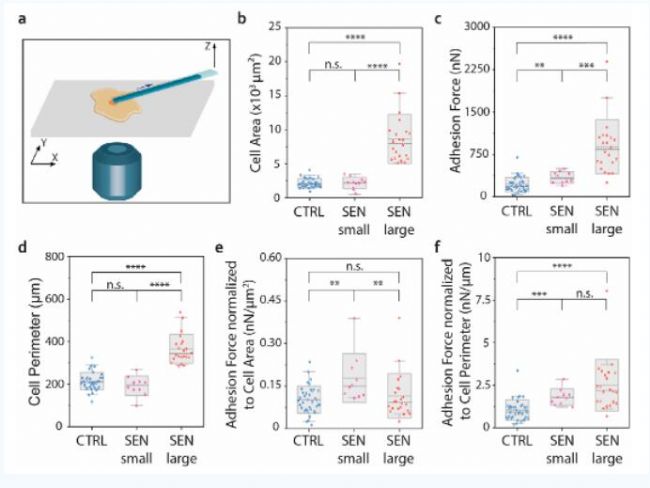 FluidFM技術用于衰老與正常細胞的單細胞粘附力測定。