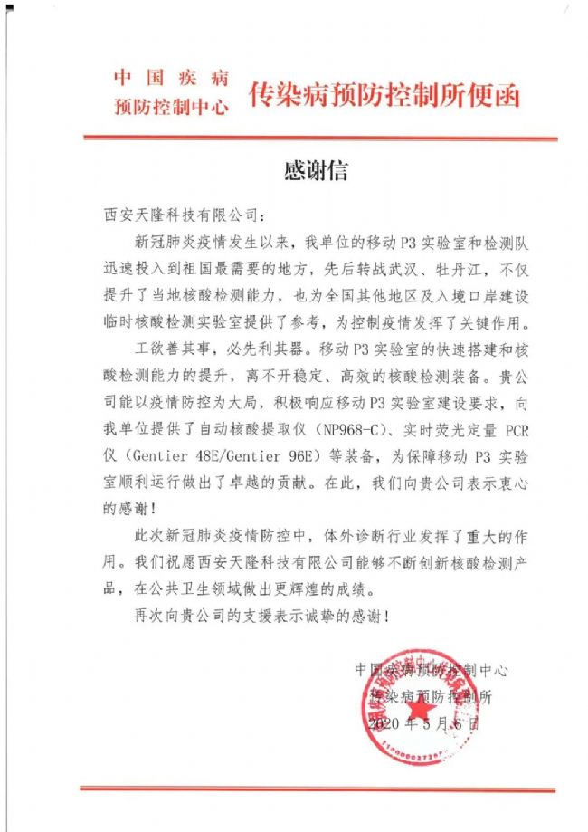 疫情防控是一場與新冠斗智斗勇的阻擊戰,也是一場與病毒賽跑的科技戰。不斷提升設備信息化、自動化、智能化程度,突破核酸檢測時間瓶頸,才能盡早阻斷疫情傳播,為抗疫贏得時間先機。 天隆將繼續研發新技術,加快科技成果轉化,不斷上市新產品,為穩定疫情防控大局提供科技支撐。