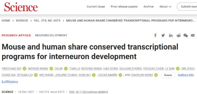 單細胞測序助力探究人腦中間神經元多樣性形成的轉錄調控機制