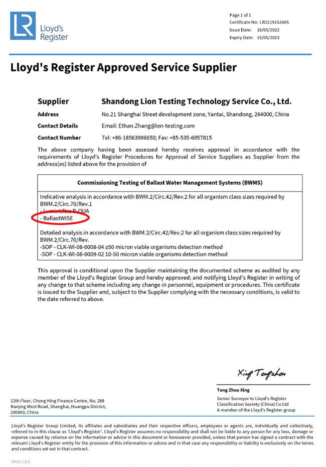 近日,萊恩檢測集團借助BallastWISE壓艙水檢測系統等設備相繼獲得了LR以及BV船級社的BWMS調試測試服務商資質。