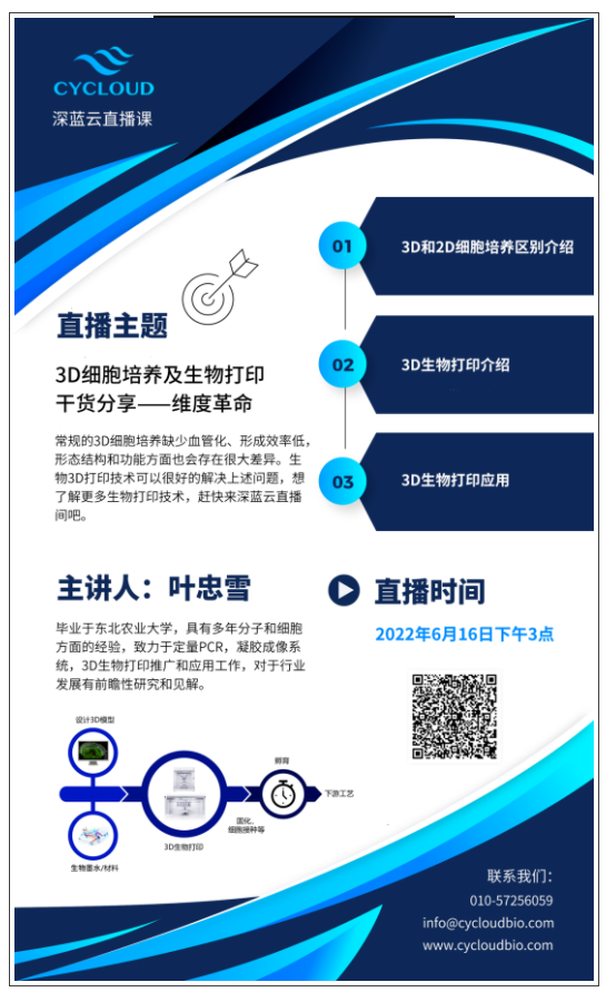 常規的3D細胞培養缺少血管化、形成效率低,形態結構和功能方面也會存在很大差異。生物3D打印技術可以很好的解決上述問題,想了解更多生物打印技術,趕快來深藍云直播間吧。