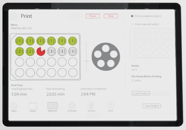 全世界第一臺能直接在多孔板中進行打印的光投影式生物打印機,分辨率達到10μm,直接在多孔板內完成連續不分層的打印。