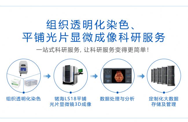 組織透明化技術和光片熒光顯微技術的發展,使研究者能從宏觀到微觀對生物組織內部的結構及生理、病理特征進行觀察和功能性分析。锘海生物科學儀器(上海)有限公司提供完整器官的組織透明化、組織免疫熒光染色、高分辨3D顯微成像以及大數據分析一體化服務,旨在通過精準、快速、多樣化的一站式科研服務為每一位生命科學工作者提供個體化/定制化的解決方案。