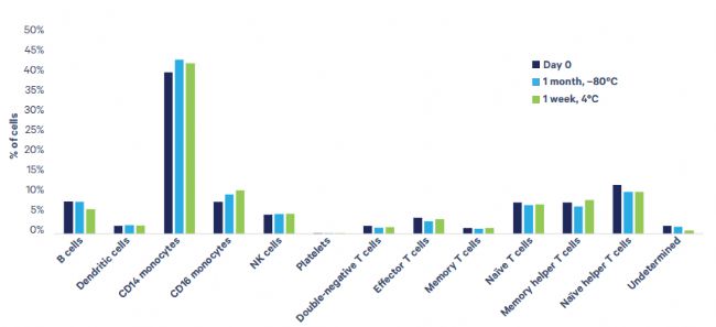 圖1 PBMC加入RNA固定試劑后不同保存時(shí)間的單細(xì)胞轉(zhuǎn)錄組測序細(xì)胞檢出情況(數(shù)據(jù)來源:10x Genomics官網(wǎng))