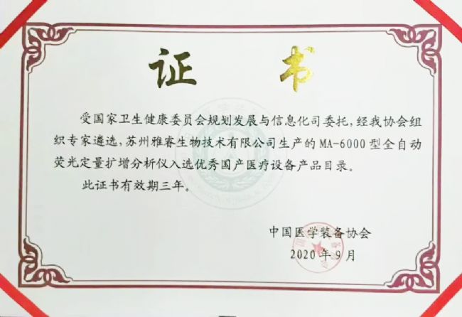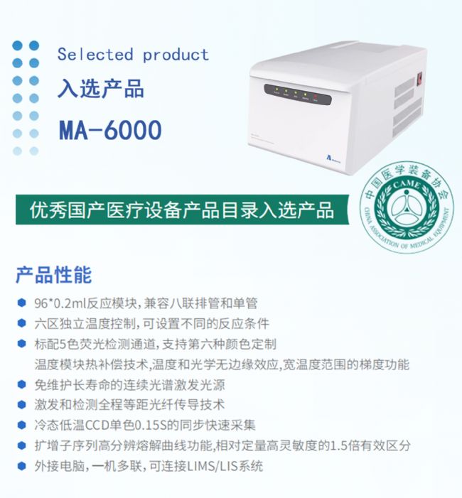 此次雅睿生物MA-6000型實(shí)時(shí)熒光定量PCR儀產(chǎn)品的成功入選推介,展現(xiàn)了MA-6000的可靠性以及業(yè)界對(duì)雅睿生物品牌的高度認(rèn)可。這款產(chǎn)品曾在2020年獲評(píng)國產(chǎn)優(yōu)秀醫(yī)療設(shè)備,疫情期間也成為了核酸檢測(cè)的有力支撐設(shè)備。多次響應(yīng)國務(wù)院,工信部和衛(wèi)健委的征調(diào),積極參與國內(nèi)各地疫情防控。