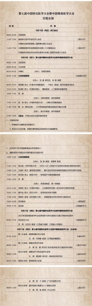 為了迎接黨的二十大勝利召開,落實“健康中國2030”戰略,推動科研成果轉化落地,促進人民健康水平持續提升,由中國轉化醫學聯盟、中國精準醫學學會(籌)和江西省衛生健康委員會主辦的“第七屆中國轉化醫學大會暨中國精準醫學大會和2022中國醫藥細胞生物學學術大會”將于2022年8月19日-21日在江西省南昌市隆重舉行。