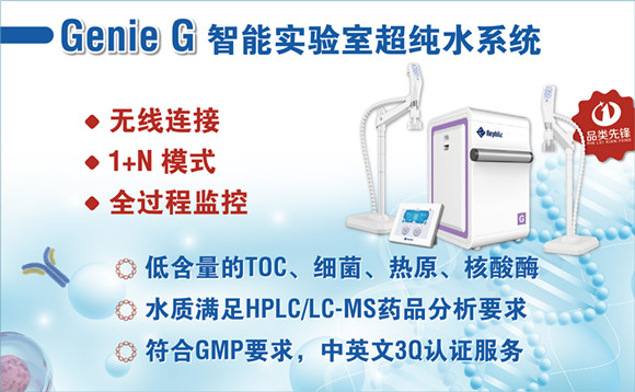 質量源于設計,樂楓的Genie 純水系統在設計中,充分考慮了高端用戶的需求,為其應用提供高品質的解決方案。比如,從研發實驗室細胞培養用水及QC實驗室進行ICP-MS/HPLC/LC-MS等痕量分析的應用出發,Genie G超純水系統采用了領先的EDI技術,同時搭配ICP型超純化柱和RephiBio終端過濾器等純化模塊,水中離子、有機物、微生物、內毒素、核酸酶等雜質被有效去除,其超純水中金屬離子的含量低至ppt級別。