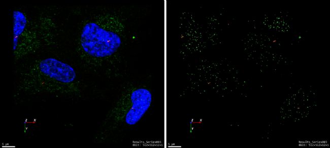 Leica confocal,512*512,中心體(紅色),目的蛋白(綠色),需求:統計目的蛋白向中心體的運輸速率