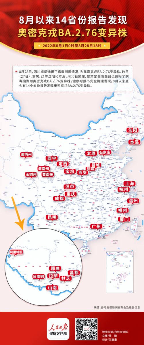 8月9日,西藏自治區(qū)疫情防控工作新聞發(fā)布會通報,拉薩市本輪疫情感染毒株確認(rèn)為奧密克戎BA.2.76。健康時報注意到,這也是我國首次公開報道發(fā)現(xiàn)BA.2.76變異株。
