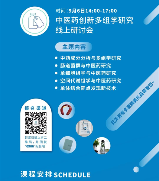 中科新生命攜手如沐風科研將于9月6日下午14:00舉辦“中醫藥創新多組學研究”線上研討會。