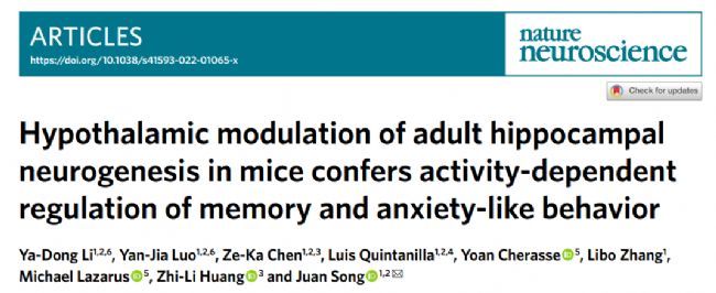 2022年5月6日,美國北卡羅來納大學(xué)教堂山分校宋娟課題組博士后李亞東、羅艷佳等人在Nature Neuroscience上發(fā)表了最-新研究,揭示了下丘腦后部核團(tuán)乳頭上核(SuM)調(diào)控成年海馬神經(jīng)發(fā)生,促進(jìn)記憶提取和對(duì)抗焦慮的新機(jī)制。