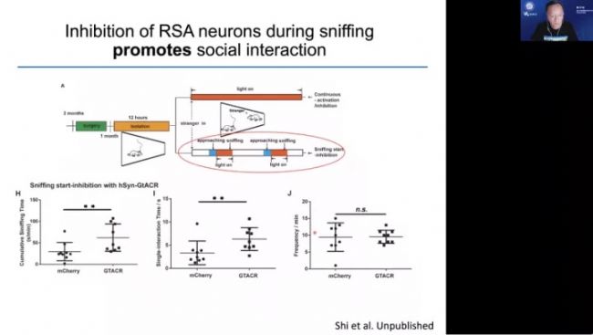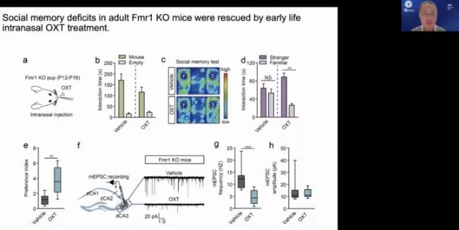 接下來,浙江大學(xué)汪浩教授以“孤獨(dú)癥的海馬機(jī)制”為主題帶來了豐富的分享內(nèi)容。通過汪浩老師的分享,我們了解到孤獨(dú)癥兩大核心的癥狀:1.社會互動和溝通的缺陷;2.有限的、重復(fù)的行為。汪浩老師通過介紹最新的社交實驗研究——小鼠胡須與社交相關(guān)的科學(xué)實驗,并結(jié)合自身實驗室多年研究,對孤獨(dú)癥的社會交往行為展開了細(xì)致的分享: