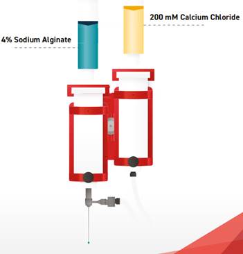 1. 使用氯化鈣溶液預(yù)交聯(lián)海藻酸鈉。為了改善最終結(jié)構(gòu)的機械性能,可以在擠壓前通過將海藻酸鹽溶液與少量低濃度氯化鈣混合來部分交聯(lián)該溶液。這會產(chǎn)生更長的聚合物鏈,從而使由此產(chǎn)生的生物打印結(jié)構(gòu)更完整。