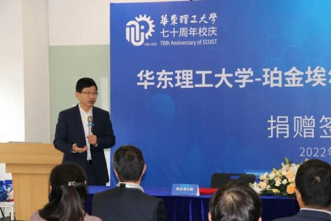 閻海峰副校長代表華東理工大學全體師生向珀金埃爾默公司的捐贈表示誠摯感謝,并分享了學校在教師人才培養、發展科研創新、國際合作等領域的突出成果。
