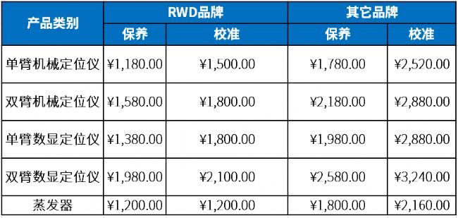 瑞沃德校準與保養服務收費標準