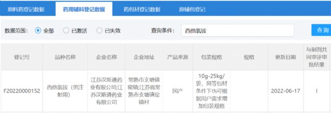西他氯銨是藥物傳輸系統的新型輔料,目前艾偉拓旗下新款輔料西他氯銨已獲得CDE登記號(F20220000152),DMF號(37285),助力客戶制劑產品中外申報,登記信息如下: