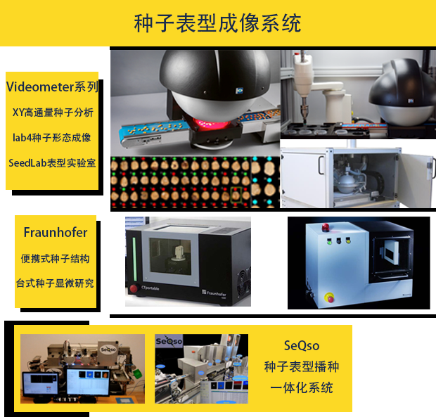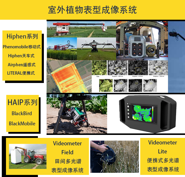 公司主營產品有:WIWAM植物表型成像系統(RGB成像模塊、多光譜激光雷達模塊、葉綠素熒光成像模塊、高光譜成像模塊、近紅外成像模塊、計算機斷層掃描模塊、紅外成像模塊、3D激光雷達模塊等);Videometer植物、種子多光譜表型成像系統、VideometerMR根系多光譜表型成像系統、VideometerLiq液體穩定多光譜成像系統、VideometerMic顯微多光譜成像系統、Videometer Lite便攜式多光譜成像系統、Videometer Lab500大成像面積多光譜成像系統、Videometer MiniLiq液體穩定多光譜成像系統、Videometer LabUV紫外光多光譜成像系統、VideometerLab XY高通量種子表型成像系統;Plant-Ditech公司的Plantarray高通量植物生理表型研究平臺、植物逆境生物學生理研究平臺、植物種質資源精準評價與鑒定平臺以及SPAC分析系統;Fraunhofer研究院的便攜式植物種子斷層掃描系統、臺式計算機斷層掃描系統、全自動種子斷層掃描系統、大型落地式根系表型成像系統;Hiphen 公司Airphen多光譜表型成像系統、Hiphen LITERAL手持植物表型冠層成像系統、Hiphen推車多光譜成像系統、Phenomobile全自動全植株智能表型成像車;HAIP 公司的BlackBird科研級高光譜成像系統、Blackbullet科研級高光譜成像系統、Blackbox科研級高光譜成像系統、BlackIndustry 工業級高光譜成像系統、Black mobile便攜式高光譜成像系統;SeQso高通量種子表型與播種一體化系統、CF葉綠素種子成熟度測量儀、自動種子分揀系統(X光、多光譜、高光譜、葉綠素熒光);STEPS公司的植物生理生態監測系統、在線光合生理監測系統、土壤養分測量系統、植物養分測量系統、土壤5合1多參數測量儀、土壤直測PH計、鹽度/活度檢測儀;Pessl公司的植物生態環境智能傳感器平臺、植物物候遠程監測系統;Inno-concept公司的植物活力脅迫測量系統、植物抗逆研究測量系統、氣相離子遷移譜儀;Aquation水陸兩用葉綠素熒光檢測系統、經典和手持葉綠素熒光儀、Aquation公司的水下光合呼吸測量系統;EMS公司的便攜式物聯網乙烯氣體分析儀、溫室氣體物聯網監測系統;Cleangrow多參數離子測定儀、植物工廠自動8離子測定儀;Schaller全谷物濕度儀;EGC植物生長培養箱和生長室等等。