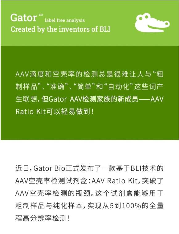 Gator發布新品基于BLI技術的AAV空殼率檢測試劑盒