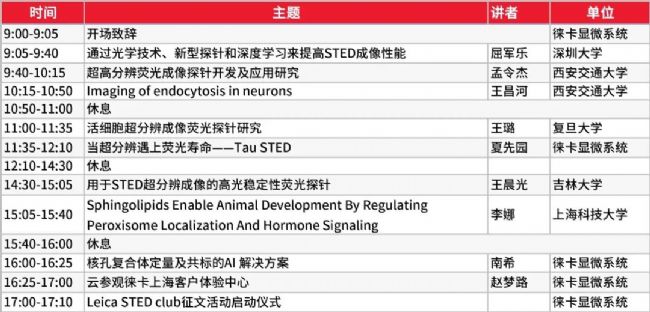 為我們的客戶搭建交流的平臺(tái)是我們組織用戶交流會(huì)的初衷,此次以STED為主題,我們將圍繞STED新技術(shù)、新染料和多領(lǐng)域應(yīng)用案例,并且為大家?guī)?lái)Leica STED相關(guān)新技術(shù)的介紹。