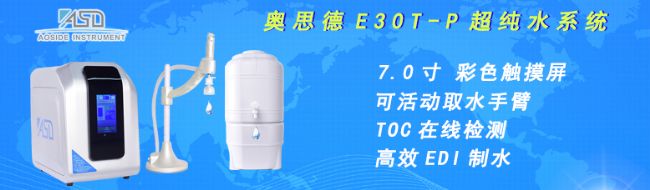 近期,重慶奧思德儀器設備有限公司推出了實驗室高端型超純水系統E30T-P機型,該機型結合優良的預處理和先進的反滲透技術,以便捷、經濟的自來水為進水直接生產高純水,可滿足多樣化的實驗需求,如原子吸收、精密儀器分析、高精密光學鏡片沖洗、微量元素分析用水,分子生物實驗用水等。