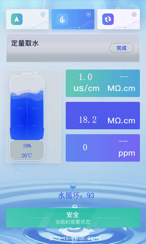 智能化、自動化,設置定時(定量)取水,無需人工看管;RO膜自動沖洗,UP自動循環,確保水質安全,延長耗材壽命;耗材到期自動提醒;多級密碼菜單,可選配物聯網模塊。