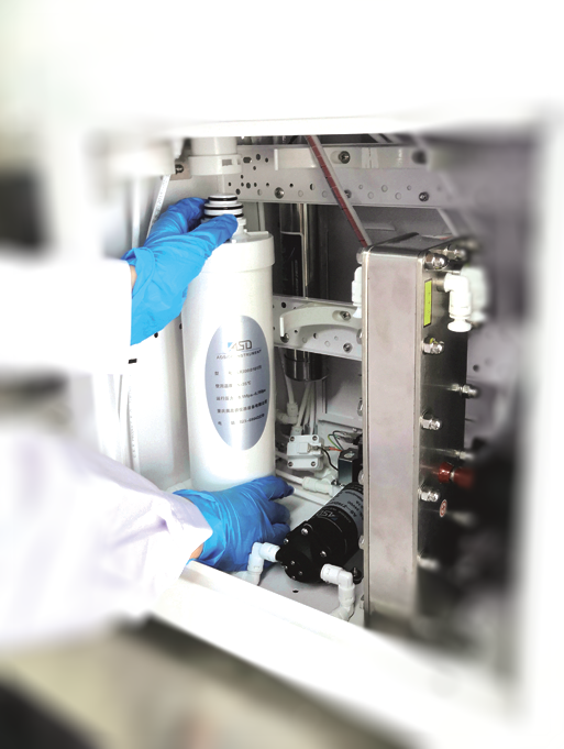 高品質、低耗材,采用雙級反滲透,有效去除水中99%以上雜質;科學配比精純化柱樹脂,有效降解TOC至10ppb以下,配合自主研發雙波長紫外燈,可高效降解TOC至3ppb以下。
