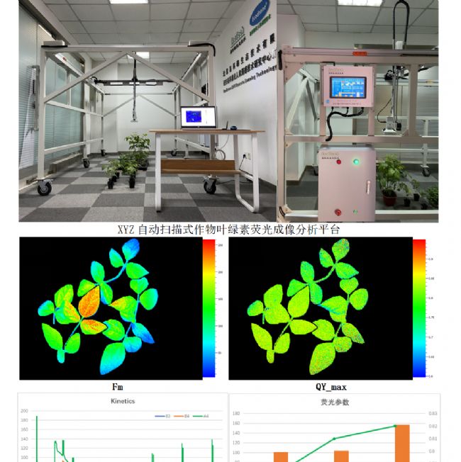 該系統(tǒng)包含XYZ自動(dòng)掃描式作物葉綠素?zé)晒獬上穹治銎脚_(tái)和大型多光譜植物光合熒光表型成像平臺(tái),成像面積大,自動(dòng)化精準(zhǔn)定位測(cè)量,并且具有較強(qiáng)的擴(kuò)展性,適用于多種測(cè)量場(chǎng)景。