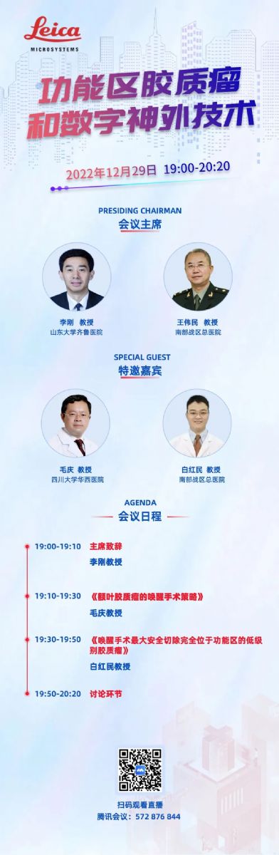 李剛,教授,主任醫(yī)師,二級教授,博士生導(dǎo)師,泰山學(xué)者攀登計(jì)劃專家。山東大學(xué)齊魯醫(yī)院神經(jīng)外科主任、山東大學(xué)腦與類腦科學(xué)研究院副院長、山東省神經(jīng)外科質(zhì)量控制中心主任、山東省醫(yī)學(xué)會神經(jīng)外科分會前任主任委員、中華醫(yī)學(xué)會神經(jīng)外科分會全國委員、中國醫(yī)師協(xié)會神經(jīng)外科醫(yī)師分會全國委員、中國醫(yī)師協(xié)會腦膠質(zhì)瘤專委會副主任委員、2007年獲王忠誠中國神 獎—學(xué)術(shù)獎。