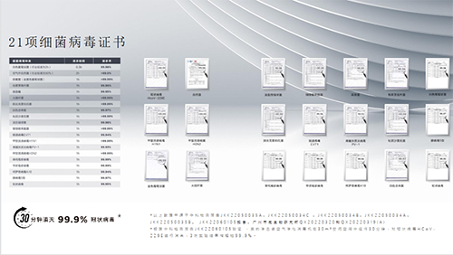 美的生物醫療凈擊者空氣凈化消毒機,創新第四代空氣消殺技術—Mixpurify 空氣物表復合消殺系統,擁有10層高效濾網,實現空氣物表雙消殺,30分鐘消殺99.9%冠狀病毒。在空氣消殺上,air magic高能離子場域技術和Nanopurifier自摩擦凈菌恒效技術,雙重核心科技,有效消滅空氣中的病毒和細菌。在物表消殺上,美的生物醫療空氣消毒機采用了次氯清消殺因子技術發揮巨大的作用。次氯清消殺因子可沉降附著于物表,進入病菌細胞內部,快速分解DNA并破壞細胞活性,從而高效滅殺物表細菌病毒。截至目前,美的凈擊者空氣凈化消毒機已獲得 21項權威檢測機構的細菌病毒消殺檢測報告,長效守護有證可依。