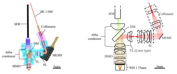 北京大學微型化三光子顯微鏡成像深度的突破得益于全新的光學構型設計。(圖3)