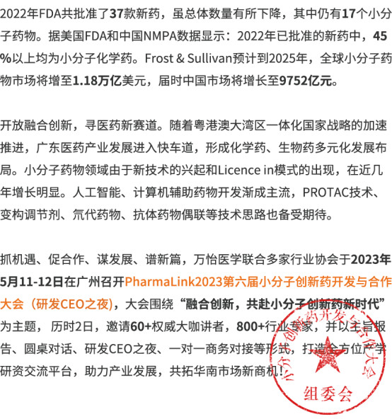 PharmaLink 2023第六屆小分子創(chuàng)新藥開發(fā)與合作大會 開放: