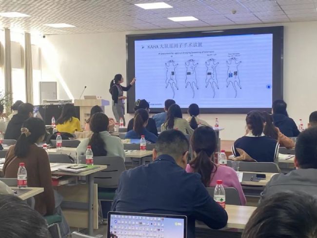 埃德儀器工程師石如玉介紹了小動物遙測技術,主要強調其在動物研究中不易感染、增加活動范圍和同時記錄多個動物等優勢。