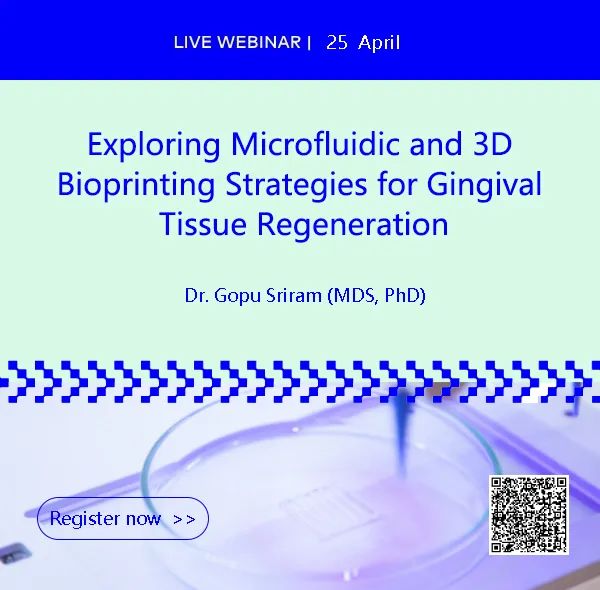 在這次網絡研討會中,新加坡國立大學牙科學院的Gopu Sriram博士將介紹微流控和3D生物打印技術在牙齦組織再生中的應用探索等內容,歡迎大家注冊參加。