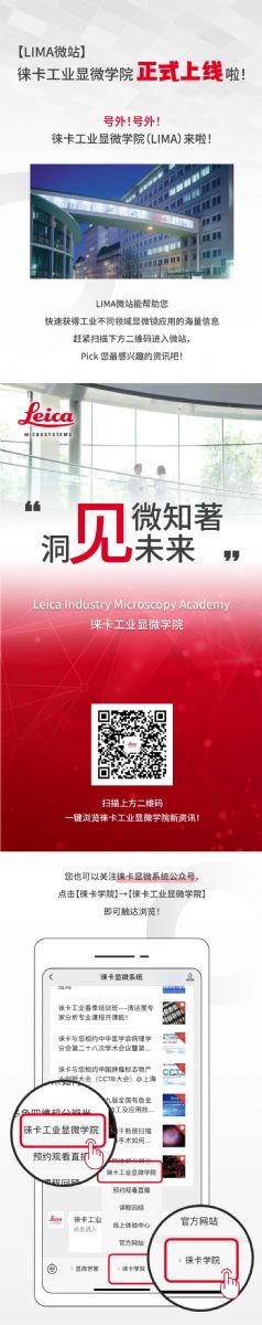 此外,隨著徠卡工業(yè)學(xué)院(LIMA)的正式成立,這可是值得慶祝的事情呢!我們也即將推出系列活動(dòng),例如“徠卡工業(yè)---百年傳承的工藝與技術(shù)” 尋找最老工業(yè)顯微鏡、分享你與工業(yè)顯微鏡的不解之緣等等,踴躍投稿,更有大獎(jiǎng)等您來拿!