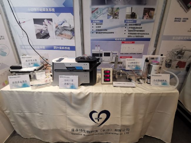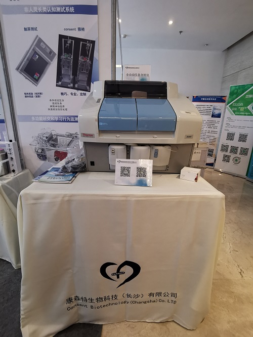 康森特生物科技長沙有限公司應邀參展,在這三天的會議中,感謝會議主辦方的大力支持,展出了過氧化氫消毒機、全自動生化分析儀、小動物麻醉機、腦立體定位儀、在體多通道神經電生理系統、組織氧含量檢測儀、猴椅等動物科研產品。眾多行業內的專家、學者、研究人員紛紛來到康森特生物科技的展位參觀交流!