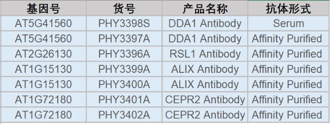 針對調節PYLs相關蛋白研究,PhytoAB最近推出了系列抗體如下: