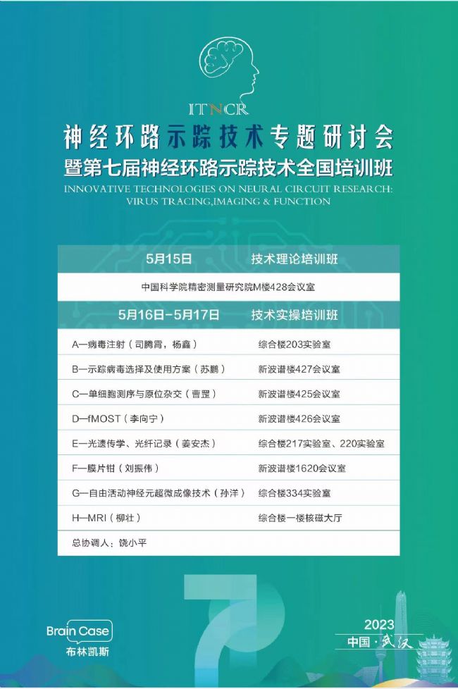2023年神經環路示蹤技術專題研討會暨第七屆神經環路示蹤技術全國培訓班于2023年5月12日-18日在武漢召開。