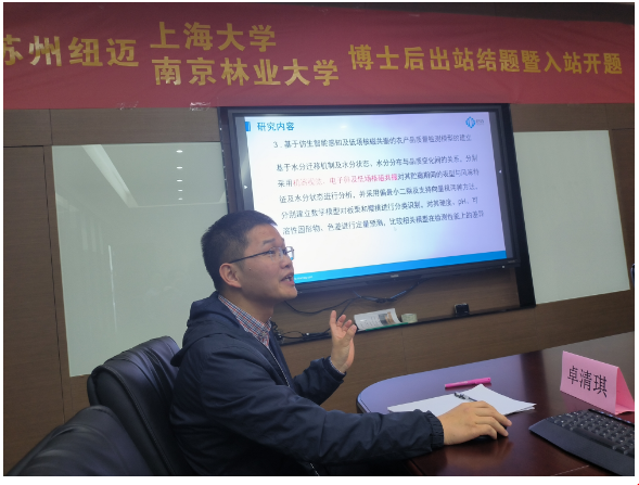 下一議程是入站博士后開題的評審,入站博士后卓清琪博士以“面向農產品質量檢測的仿生智能感知及低場核磁共振技術應用研究”作為研究方向,他將要開展油料植物種質資源優選研究,探究基于智能感知及低場核磁共振技術結合的智能快捷的品質檢測方法。卓博士選題面向國家戰略需求,具有較好的應用前景、轉化潛力和科學價值。結果匯報、答辯和審查,專家組認為課題目標明確,思路清晰,方法得當。同時認為南京林業大學博士后流動站和蘇州紐邁博士后工作站具備該課題的研究條件, 專家組給予支持,同意開題。