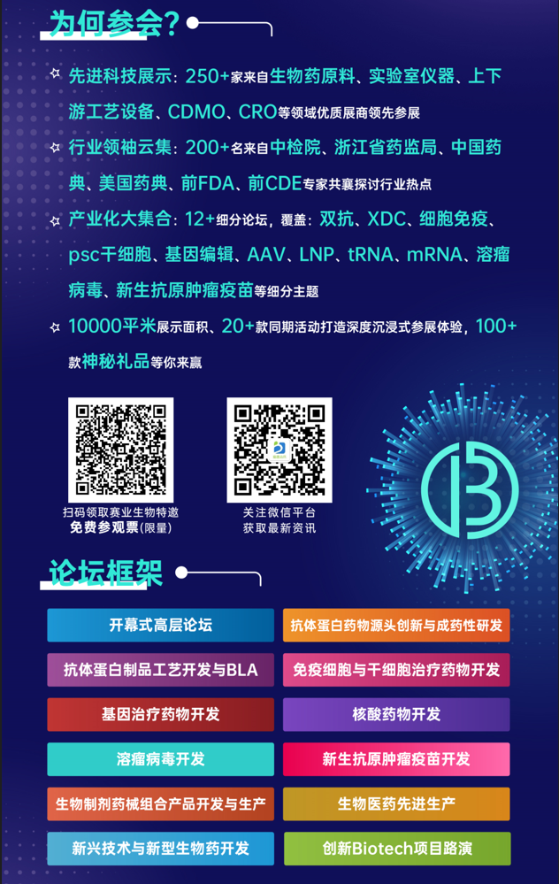 BioCon China Expo 2023第十屆國際生物藥大會暨展覽會將于2023年6月19-21日在杭州國際博覽中心隆重開幕。本屆BioCon Expo總展覽面積擴增至20000㎡的規模,預計集聚200余家優質參展企業與特色展品,打造15余場深度研討論壇,200+干貨話題、開幕式及BioCon Awards獨家權威賽事與頒獎典禮暨晚宴等豐富展區活動,看點超多!