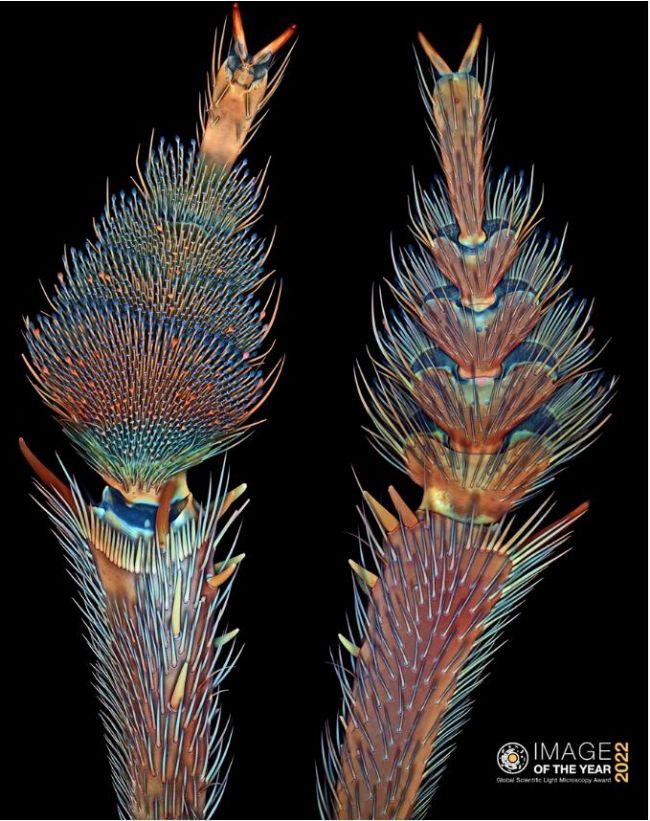 作品描述:掠食性甲蟲前跗骨的腹側(cè)和背側(cè)視圖。
