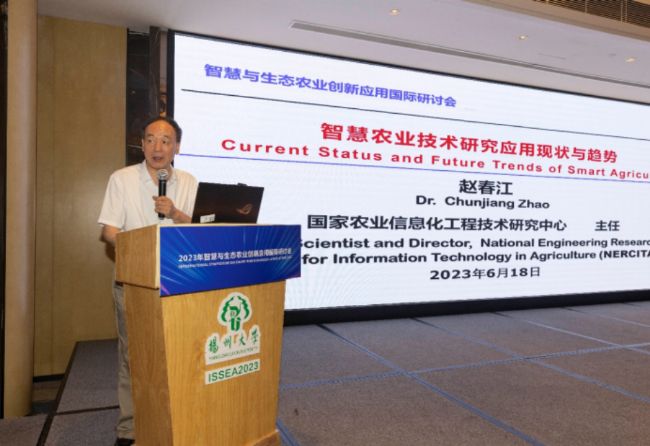 中國工程院院士趙春江研究員做了題為《智慧農業技術研究應用現狀與趨勢》的特邀報告。